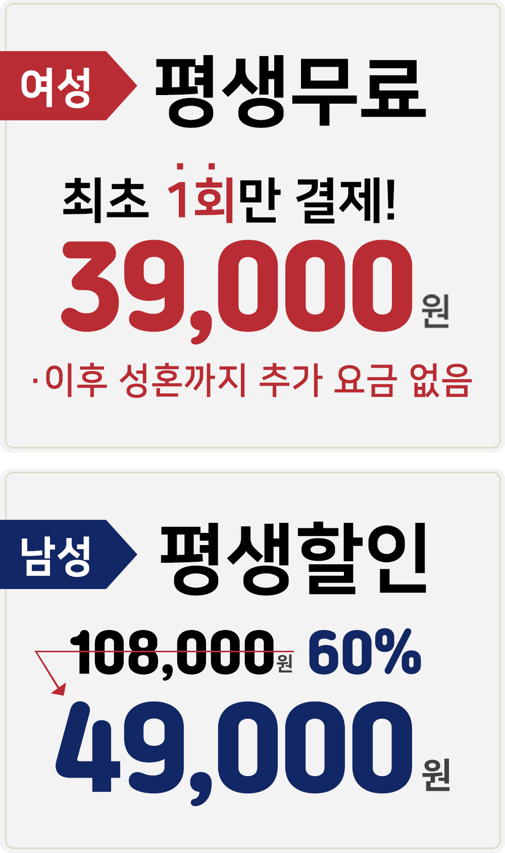 성별별 이용 조건이 다릅니다.
